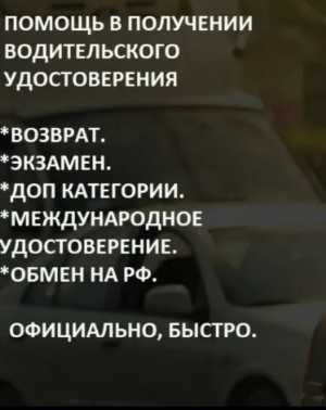 Помогу в получении водительского удостоверения все вопросы по телефону!